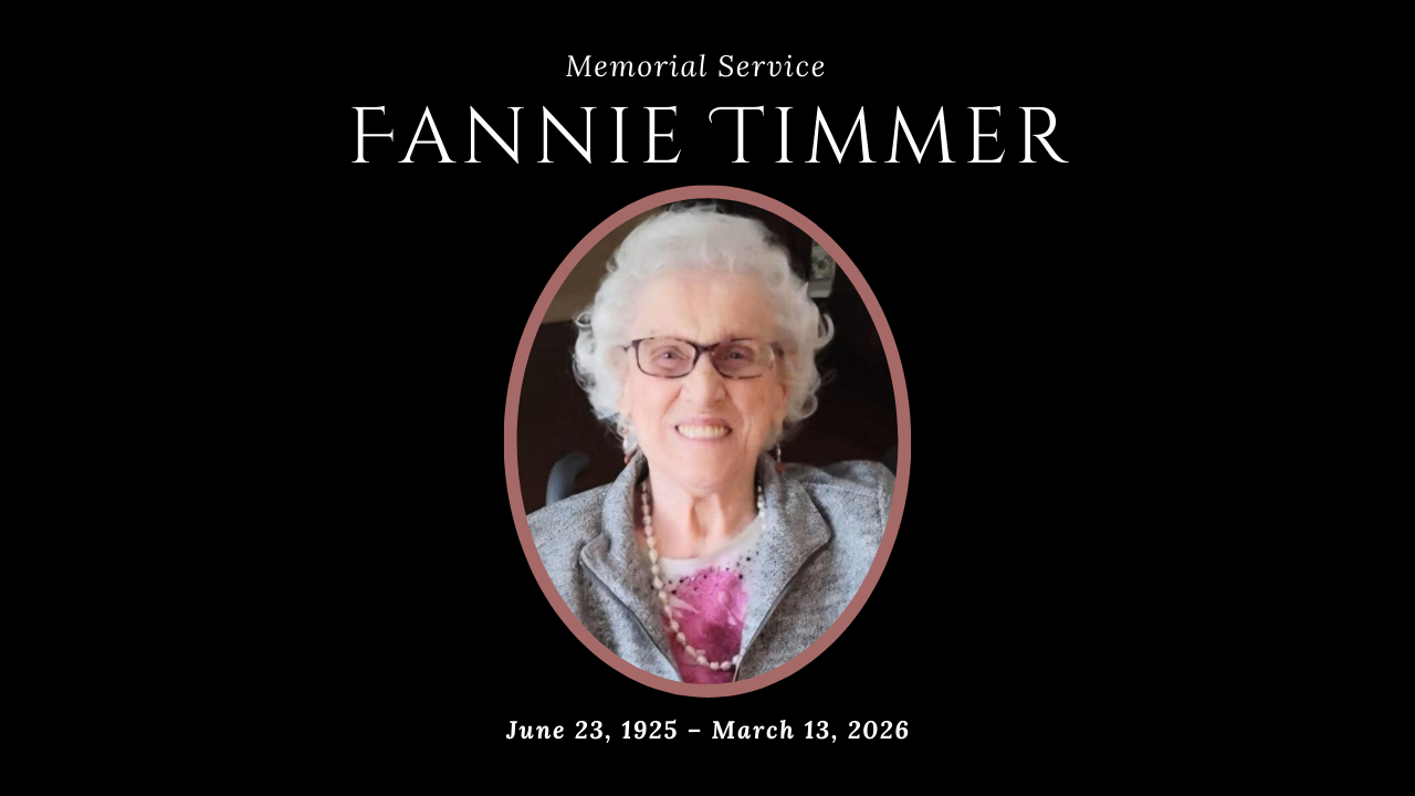 Thank you for joining us for the Memorial Service of Fannie Timmer.The service will begin at 11 am on Friday, March 20, 2026.